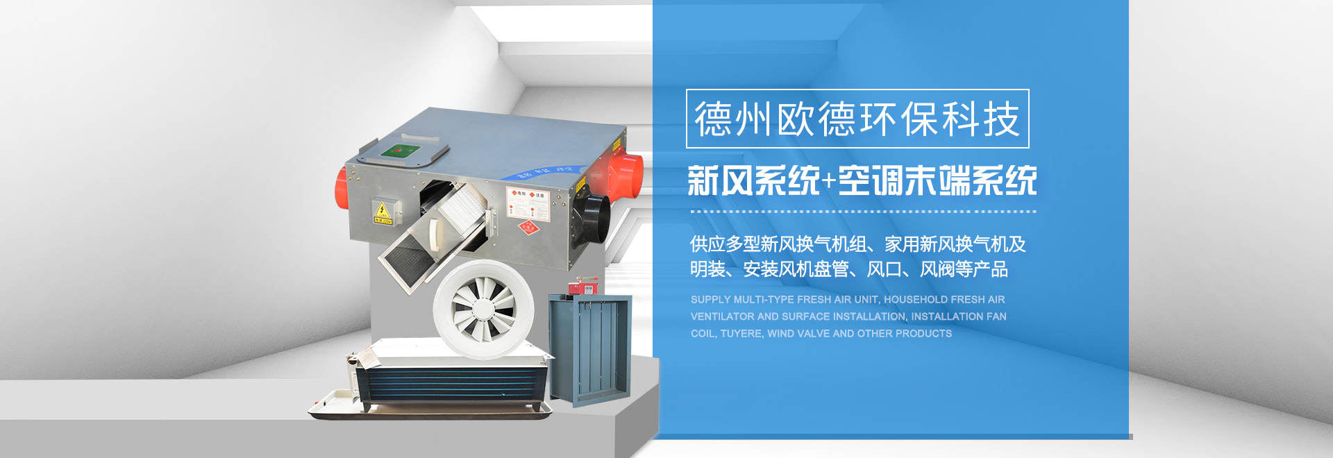 德州歐德環(huán)保科技有限公司位于山東省德州市武城經(jīng)濟(jì)開(kāi)發(fā)區(qū),是一家集空調(diào)設(shè)備產(chǎn)、研、銷(xiāo)相結(jié)合的現(xiàn)代化企業(yè)。歐德以技術(shù)水平、服務(wù)標(biāo)準(zhǔn),贏得客戶的信任。公司建有現(xiàn)代化水平的商用空調(diào)設(shè)備生產(chǎn)線與末端設(shè)備生產(chǎn)線,可定制生產(chǎn)多型空調(diào)設(shè)備。  公司主要產(chǎn)品:風(fēng)機(jī)(排煙風(fēng)機(jī)、軸流風(fēng)機(jī)、邊墻風(fēng)機(jī)、斜流風(fēng)機(jī)(混流風(fēng)機(jī))、屋頂風(fēng)機(jī)、離心風(fēng)機(jī)、誘導(dǎo)風(fēng)機(jī))、新風(fēng)處理機(jī)組、吊頂式空調(diào)器、風(fēng)機(jī)盤(pán)管(臥式暗裝風(fēng)機(jī)盤(pán)管、臥式明裝風(fēng)機(jī)盤(pán)管、立式明裝風(fēng)機(jī)盤(pán)管、卡式風(fēng)機(jī)盤(pán)管等),各類(lèi)通風(fēng)管道(共板法蘭風(fēng)管、酚醛風(fēng)···